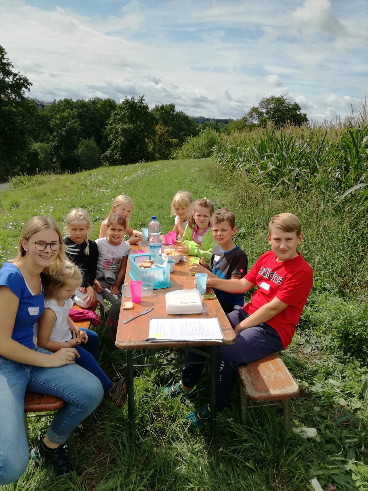 Als krönenden Abschluss wurde mit den Kindern noch eine Feuerstelle angezündete, an welcher dann Knacker und selbst hergestelltes Stockbrot gegrillt wurde.