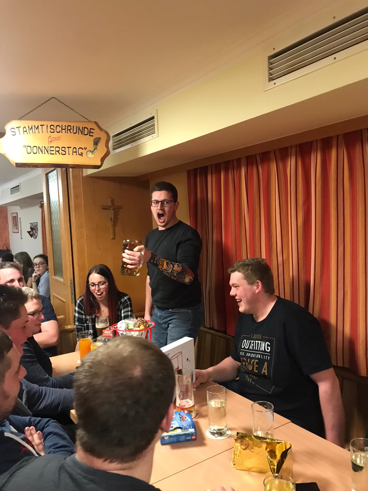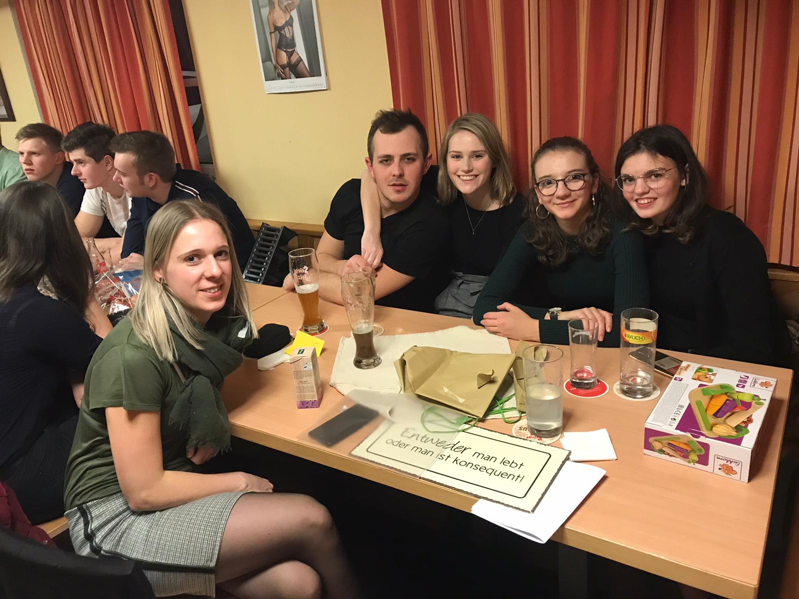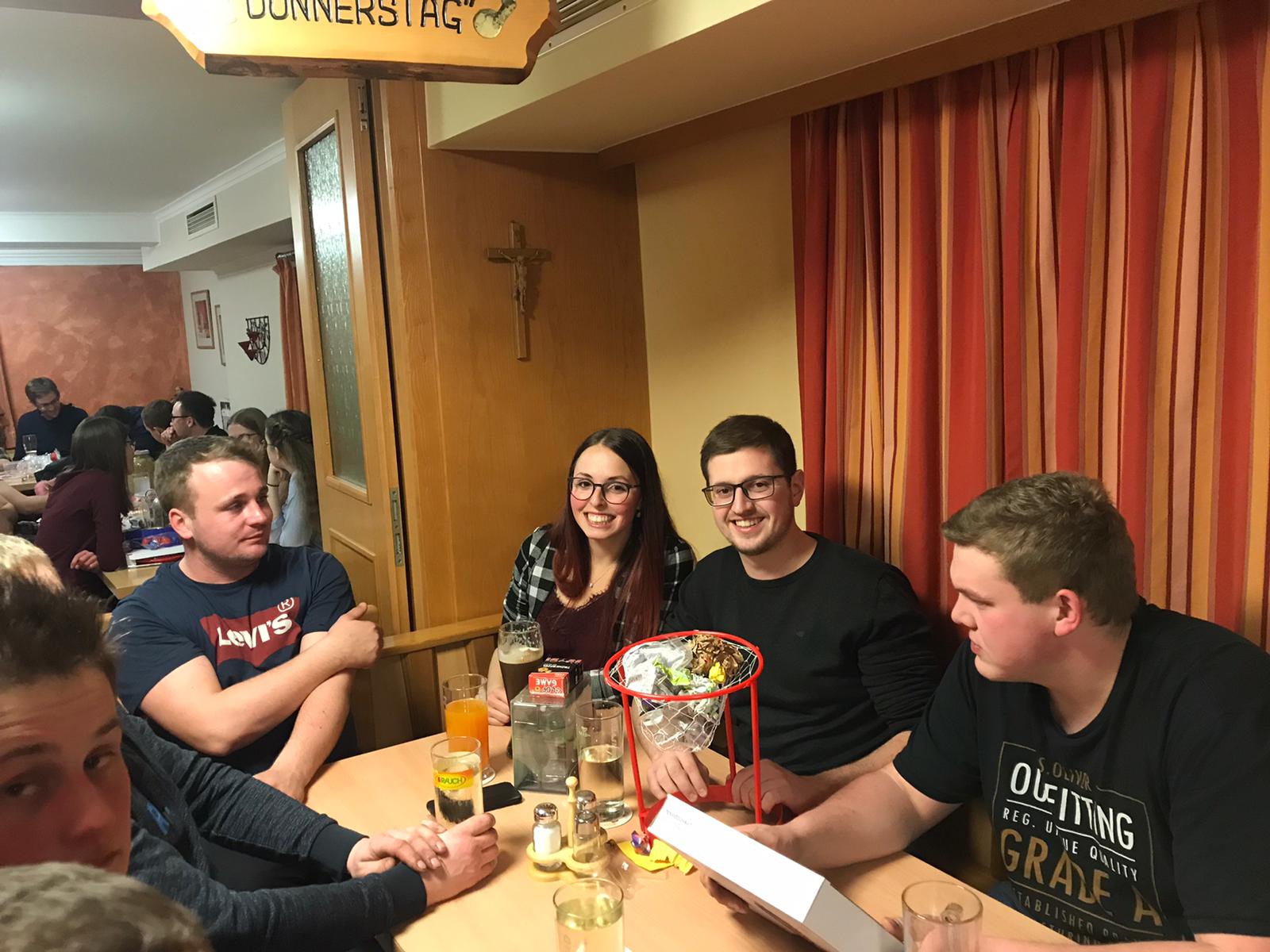 Am 17.Jänner fand spät aber doch auch unsere Weihnachtsfeier beim Gasthaus Wiesinger statt. Nach dem wir uns mit Schnitzl und sämtlichen Beilagen verköstigten, kamen wir zu unserem Highlight des Abends- dem Wichteln. Nachdem jeder beschenkt wurde mit einem mehr oder wenigen sinnvollen aber lustigen Geschenk, machten wir uns mit beschenkten Spielen noch einen lustigen Abend der bei dem einen oder anderen Gläschen endete.